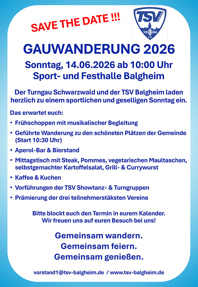 Als lebendiger und engagierter Verein stehen wir für sportliche Vielfalt, Gemeinschaft und die Förderung von Gesundheit und Wohlbefinden. Unser breites Angebot an Sportarten und Aktivitäten bietet für jeden etwas, unabhängig von Alter oder Fitnesslevel. Durch unsere leidenschaftlichen Trainer und engagierten Mitglieder schaffen wir eine positive Atmosphäre, in der sportliche Herausforderungen gemeistert und Freundschaften geschlossen werden. Tauche ein in die Welt des TSV Balgheim und entdecke, wie wir gemeinsam Bewegung, Teamgeist und Spaß fördern.